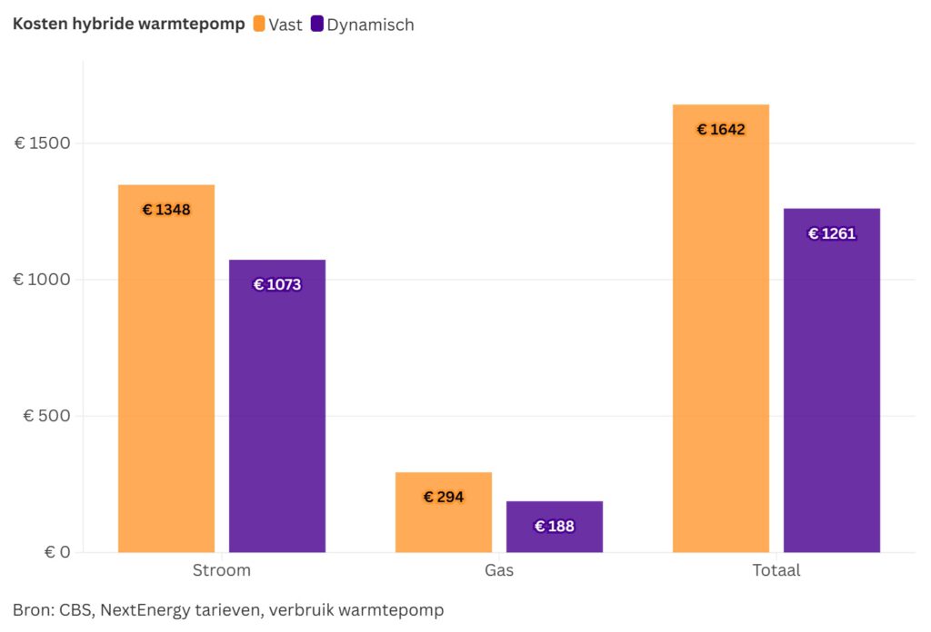 De conclusie: wie een warmtepomp combineert met een dynamisch energiecontract bespaart significant meer dan bij een vast contract, zonder enige technische aanpassingen aan het systeem.