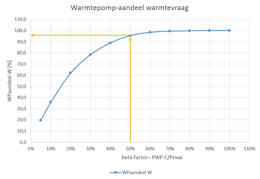 Voor zowel de all-electric als de hybride toepassing van warmtepompen is verder de β-factor (beta-factor) van het opwekkingssysteem van belang. Deze geeft aan welk aandeel de warmtepomp levert aan het totaal benodigde vermogen. De β-factor van een hybride systeem is circa 0,4 en van een all-electric systeem circa 1,0 (niet minder dan 0,8). Bij een hybride systeem kan de warmtepomp 80% tot 90% van de benodigde warmte opwekken, de CV-ketel springt bij voor de andere momenten. Bij een all-electric dient dit 0,8 te zijn doordat 95% door de warmtepomp gedaan moet worden en de rest met een elektrisch verwarmingselement.