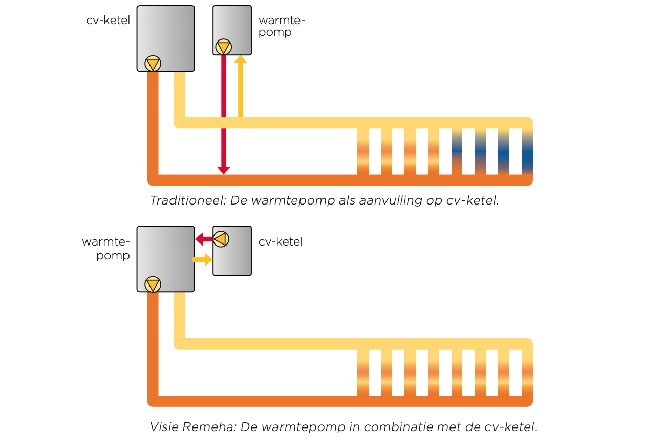 - Visieontwikkeling: de warmtepomp wordt normaliter ingezet als aanvulling op de cv-ketel, de Mercuria Ace werkt andersom, de warmtepomp in combinatie met de cv-ketel. Hierdoor haal je meer rendement omdat de Mercuria beslist wanneer de cv-ketel aangaat.
